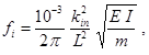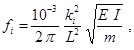 fi - собственная частота колебаний трубопровода, Гц;
