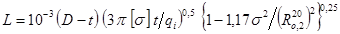 D, Di - наружный и внутренний диаметры трубы, мм;