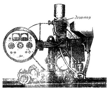 Рис. 2. Сварочный трактор АДС-1000 с установленным на нем дозатором-приставкой для подачи ППМ на вылет электрода