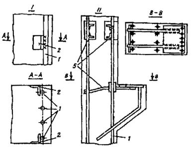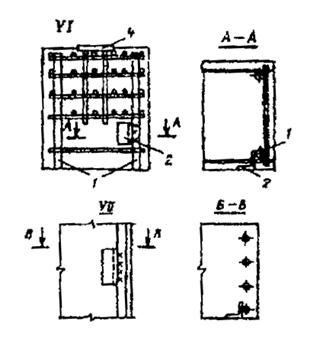 Узлы II и III предусматривают связь арматуры ригеля с арматурой колонн. Эти узлы выполняются только в тех колоннах, которые используются для объединения железобетонных конструкций.