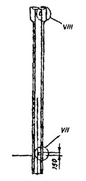 1. Объединение с помощью ригелей (рис. 14). В промышленных многоэтажных зданиях с железобетонным каркасом при отсутствии молниезащитной сетки для создания электрической непрерывности железобетонного каркаса используется арматура ригелей (не имеющая предварительного напряжения) и крайних плит перекрытия. Техническое решение узла VIII показано на рис. 15, узла I - на рис. 3. Для большей наглядности узел VIII показан в аксонометрии на рис. 16. Основные координатные размеры многоэтажных зданий приведены в таб. 8.