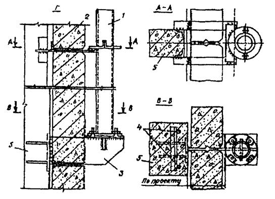 Закладные изделия для технологических или сантехнических коммуникаций, металлических площадок должны соединяться с вертикальной арматурой колонны, являющейся магистралью заземления.