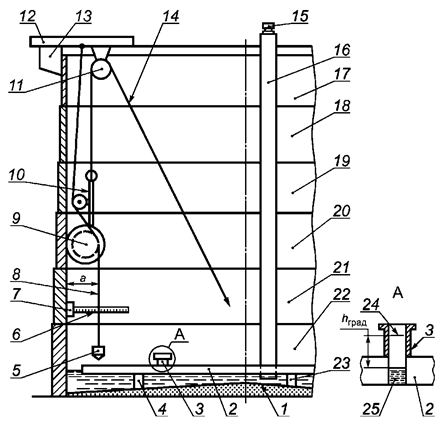 И.11 Резервуары могут быть оснащены стационарно встроенными элементами: змеевиками, пеноотводами, мешалками, уровнемерами, стационарными пробоотборниками, измерителями (датчиками) температуры и плотности, массомерами и другими устройствами. Комплектность оборудования резервуара должна соответствовать утвержденному проекту.