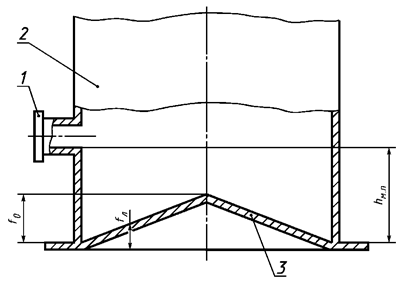 3.15 «мертвая» полость резервуара: Нижняя часть резервуара, из которой нельзя выбрать жидкость, используя приемно-раздаточный патрубок, приемно-раздаточное устройство.