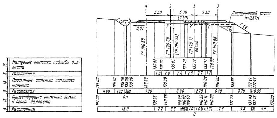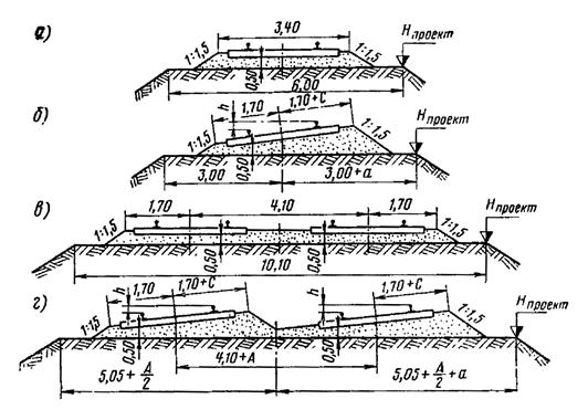 Ширина земляного полотна однопутных железных дорог на прямых участках (табл. 6.1)