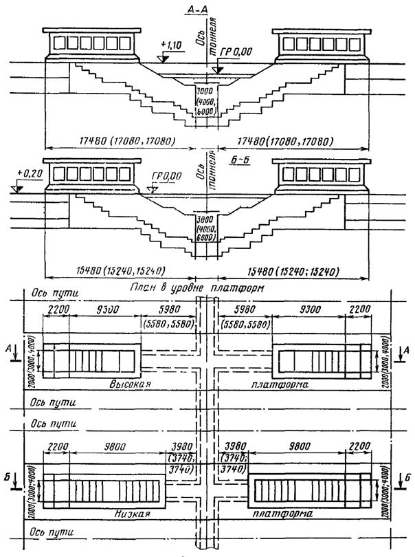 Проектные планы станций и узлов накладывают на планы местности в горизонталях и составляют в масштабах, указанных в табл. 1.1 и 1.2.
