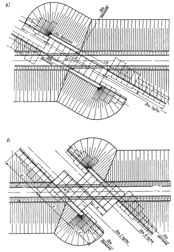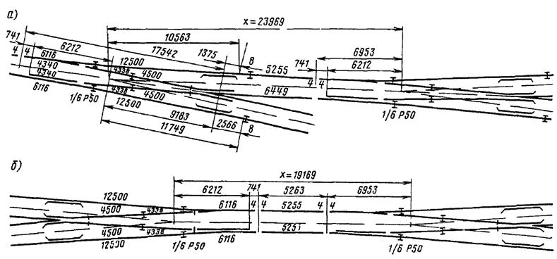 - круговых кривых при углах, кратных углам крестовин (табл. 17.9)