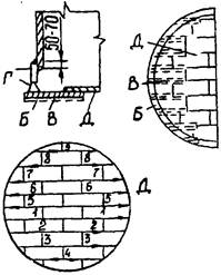 1. С вогнутой стороны дефекта приваривают по вертикали накладки Г размером 150х150 мм и толщиной 5-6 мм с приваренными в центре шпильками Д с резьбой М22-М26. Число накладок определяется по месту в зависимости от площади дефекта.