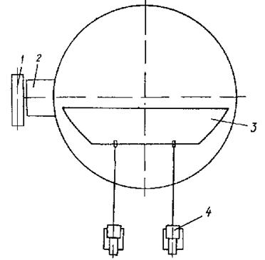 2. На прямой линии, отклоненной от касательной к уторной окружности на угол не более 30° и на расстоянии 15 - 35 м от основания данной образующей устанавливается теодолит.