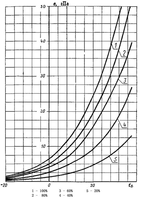 2.6. Аналитическую зависимость парциального давления водяного пара от температуры воздуха и относительной влажности определяют по формуле