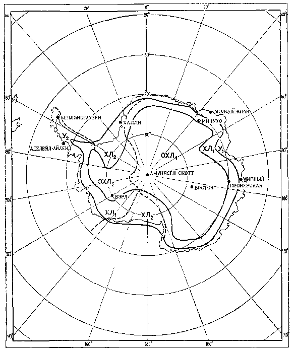 1.2. Территория Антарктиды разделяется на макроклиматические районы с очень холодным (ОХЛ), холодным (ХЛ) и умеренным климатом (У).