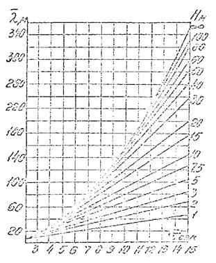 Рис. 4.2. График для определения периода и высоты волн зыби.
