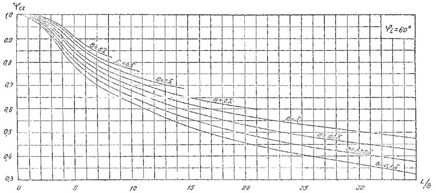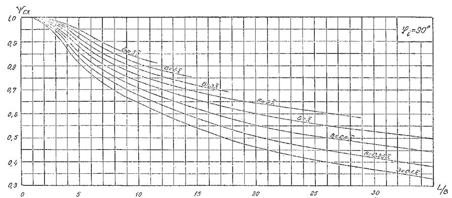 Аналогичными приемами определяем значения Кдо; r, м; A, м; L, м; L/B и ψсх в точках Р2 и Р3. При этом в точке Р3 все операции выполняем дважды, один раз по диаграмме с углом φ = 75° , а другой - по диаграмме с φ = 30°. Результаты вычислений помещены 3 - 7 табл. 2.