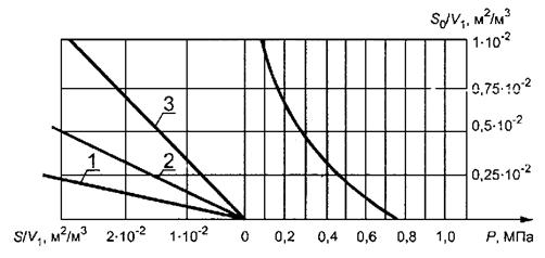 Отношение общей поверхности сетки S к свободному объему оболочки V, см3 /см3, не менее |