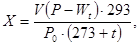 X - литраж, дм3/кг, при 20 °С и 101325 Па (760 мм рт. ст.);