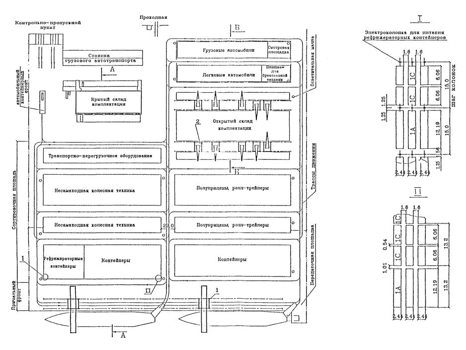 4.3.3. Компоновочные решения ПК должны быть представлены на генеральном плане района (порта) и технологической схеме ПК (план и разрезы).