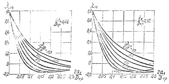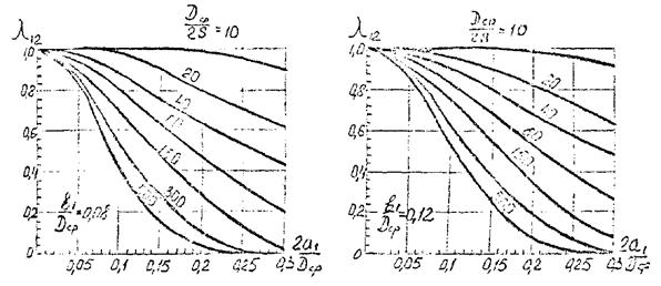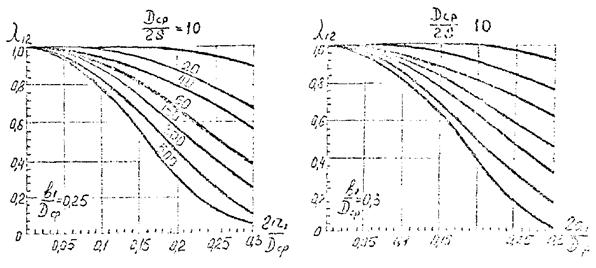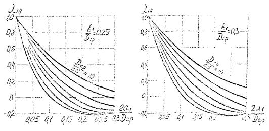 Для значений: h/dC=0,4 и d3/dC=2,5