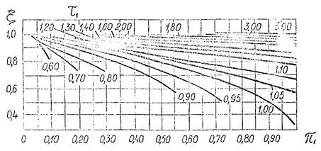 Для значений p1=0,3018 и t=0,84 коэффициент сжимаемости x=0,75.