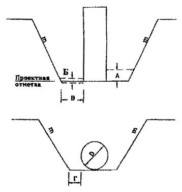 Расстояние между поверхностью откоса и боковой поверхностью возводимого в выемке сооружения (кроме искусственных оснований трубопроводов, коллекторов и пр.) при необходимости передвижения людей в пазухе ("В") |