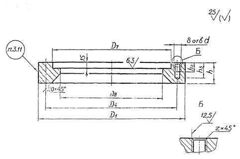 2.1.1. Конструкция, размеры и масса фланцев (поз. 1) окон смотровых типов 1, 2, 3 должны соответствовать указанным на черт. 2 и в табл. 3.