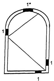 1 - опорная несущая подкладка; 2 - дистанционная фиксирующая подкладка; 3 - светопрозрачное заполнение