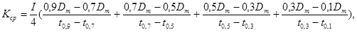 где t0,9; t0,7; t0,5; t0,3; t0,1 - время достижения соответствующих значений 0,9Dm; 0,7Dm; 0,5Dm; 0,3Dm; 0,1Dm, которые определяют графически из зависимости Dуд =f(t).
