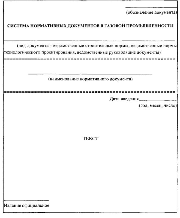В левой части первой страницы, отделенной вертикальной линией, между цветными полосками следует делать вертикальную надпись «Система нормативных документов в газовой промышленности».