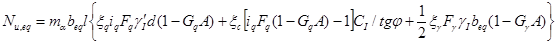 где `j, `c, `d - средние значения соответственно угла внутреннего трения, сцепления грунта основания и угла отклонения результирующей приведенной нагрузки от нормали;