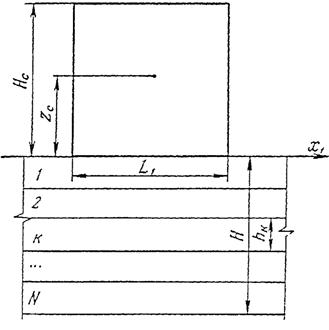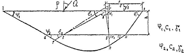 Рис. 6. Кинематическая схема к расчету несущей способности многослойного основания.