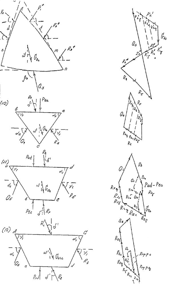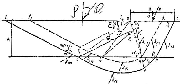 На рис. 6 приведена кинематическая схема для трехслойного основания. Графическая последовательность определения результирующей предельного сопротивления основания приведена на рис. 7-9.