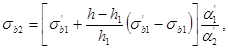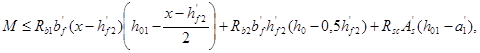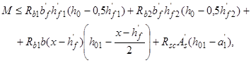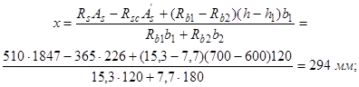 б) если граница сжатой зоны проходит в полке и пересекает участок из другого бетона, т. е. соблюдаются условия и x>h-h1