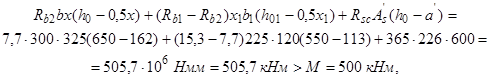б) если условие (2) не соблюдается, т. е. x>h-h1 (см. рис. 3), расчет производят с учетом различного бетона в сжатой зоне элемента из условия
