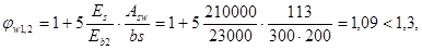 ys - коэффициент, учитывающий работу растянутого бетона на участке с трещинами