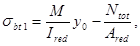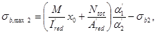 M2 - момент от соответствующей внешней нагрузки, приложенной после приобретения монолитным бетоном заданной прочности, относительно оси, проходящей через центр тяжести сечения конструкции, приведенного (по модулю упругости) к бетону сборного элемента; jb2 - коэффициент, учитывающий влияние длительной ползучести бетонов и принимаемый по табл. 2.