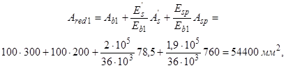 конструкций, приведенных (по модулю упругости) к бетону сборного элемента.