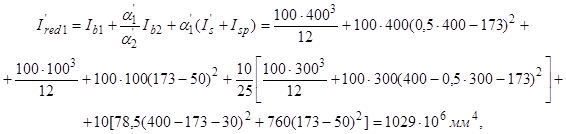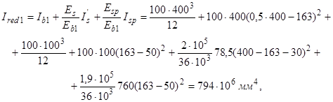 где (1/r)2 - суммарная кривизна от нагрузок, приложенных до приобретения монолитным бетоном заданной прочности (сила P, момент M1), и непродолжительного действия всей нагрузки, приложенной после приобретения монолитным бетоном заданной прочности; (1/r)3 и (1/r)4 - суммарная кривизна от нагрузок, приложенных до приобретения монолитным бетоном заданной прочности (сила P, момент M1), и соответственно непродолжительного и продолжительного действия постоянных и длительных нагрузок, приложенных после приобретения монолитным бетоном заданной прочности;