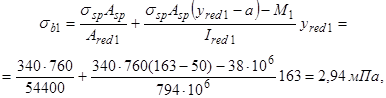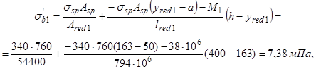 где ssp - напряжение в арматуре S к моменту приобретения монолитным бетоном заданной прочности, определяемое в соответствии с п. 1.28 СНиП 2.03.01-84.