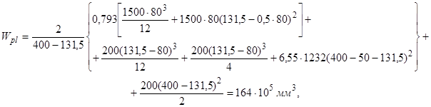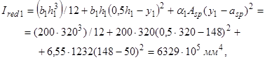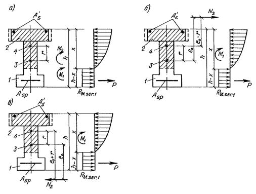 Mrp, 1 - момент усилия P относительно оси, проходящей через ядровую точку поперечного сечения сборного элемента, наиболее удаленную от растянутой зоны, трещинообразование которой проверяется, определяемый в соответствии с п. 4.5 СНиП 2.03.01-84; z1 - расстояние от центра тяжести площади сечения арматуры S до точки приложения равнодействующей усилий в сжатой зоне сечения сборного элемента над трещиной до приобретения монолитным бетоном заданной прочности, определяемое в соответствии с п. 4.28 СНиП 2.03.01-84.