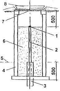 Для визуального обследования фундамента требуется его частичное вскрытие. С этой целью рядом с фундаментом устраиваются шурфы. Шурф делается такого сечения, чтобы были обеспечены нормальные условия для его отрывки на требуемую глубину. По возможности следует заглублять дно шурфа на 10 см ниже подошвы фундаментов. Однако при значительном притоке подземных вод добиться этого обычно не удается. Открытый водоотлив из шурфа допустим только на очень короткое время. В противном случае вместе с водой из-под подошвы фундаментов будут удаляться частички грунта, что может привести к неравномерной их осадке. Поэтому шурф должен докапываться на намеченную глубину непосредственно перед обследованием фундамента специалистом.