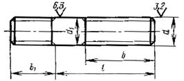 ШПИЛЬКИ С ВВИНЧИВАЕМЫМ КОНЦОМ ДЛИНОЙ 1,6d Класс точности А Конструкция и размеры Studs with threaded end of 1,6d. Product grade А. Construction and dimensions |