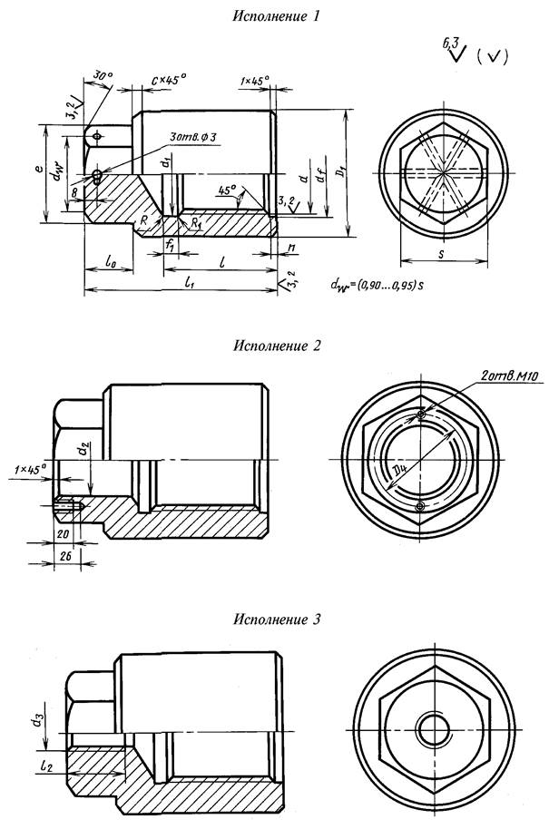 3. Размеры гаек должны соответствовать указанным на черт. 1 и 2 и в таблице.