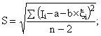 Значения комплекса I, не удовлетворяющие неравенству |Ii-а-bxi|<2,3S,| следует исключить из рассмотрения как грубые промахи, после чего раз повторить расчет, используя формулы с (1) по (13). При проведении повторного расчета грубые промахи определять не требуется.