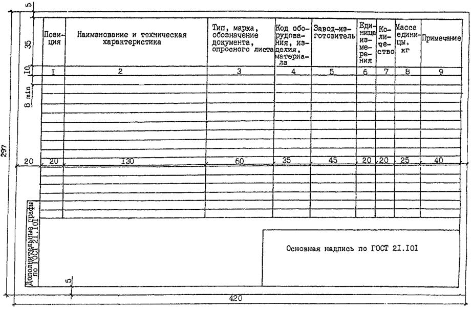 4.4 Спецификацию оборудования, изделий и материалов составляют по форме 1 ГОСТ 21.110-95, приведенной на рисунке 2.