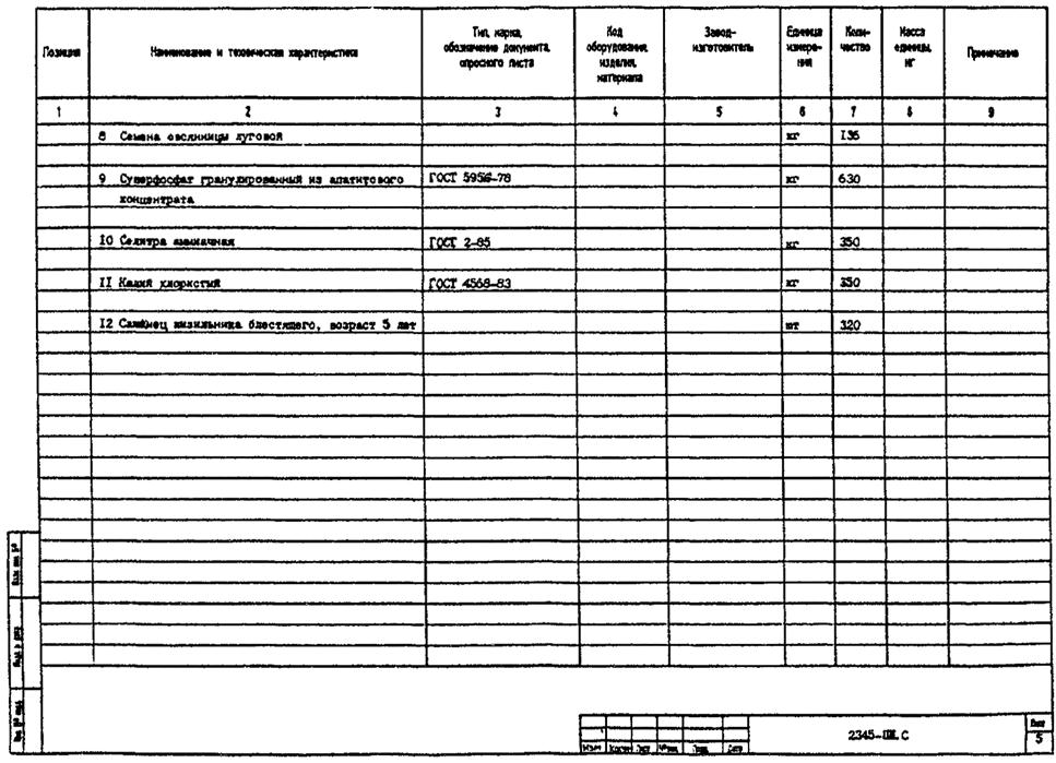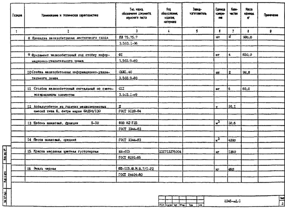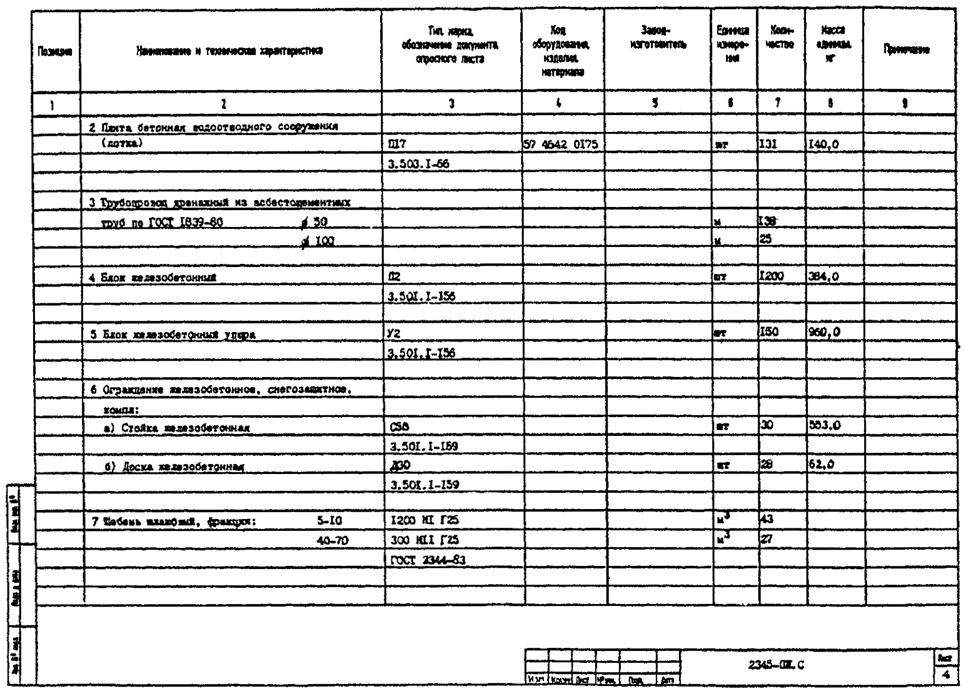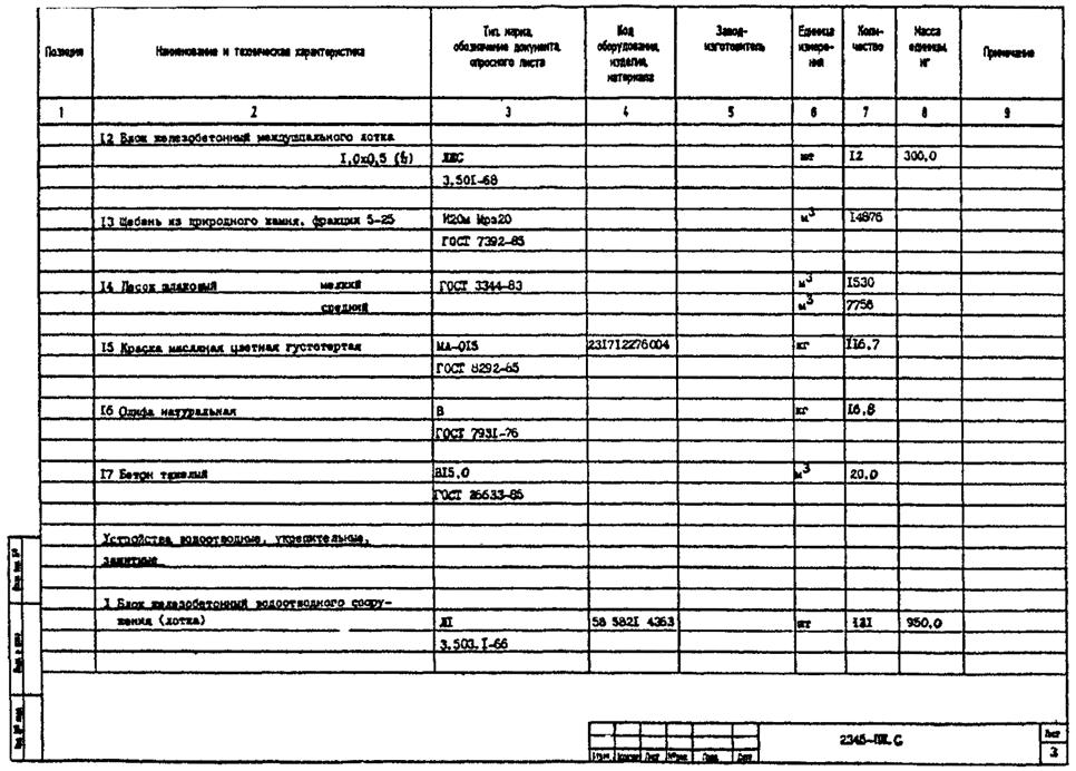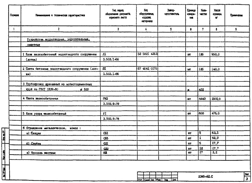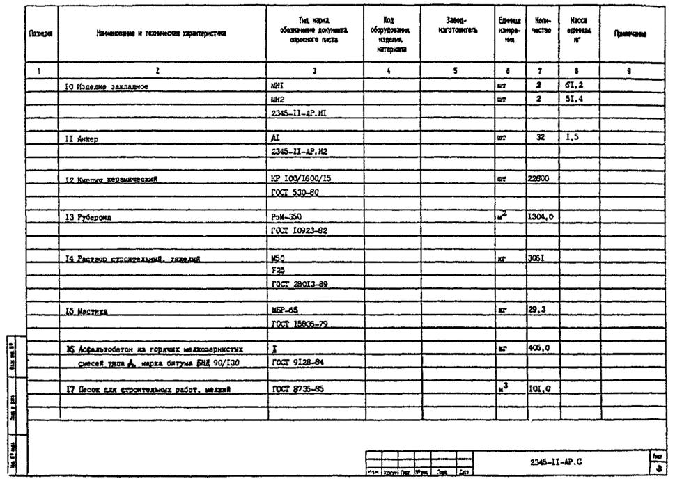 3.2. В рабочей документации спецификацию оборудования, изделий и материалов составляют по ГОСТ 21.110-95 к каждому основному комплекту рабочих чертежей (кроме основных комплектов рабочих чертежей строительных конструкций* - железобетонных, деревянных, металлических).