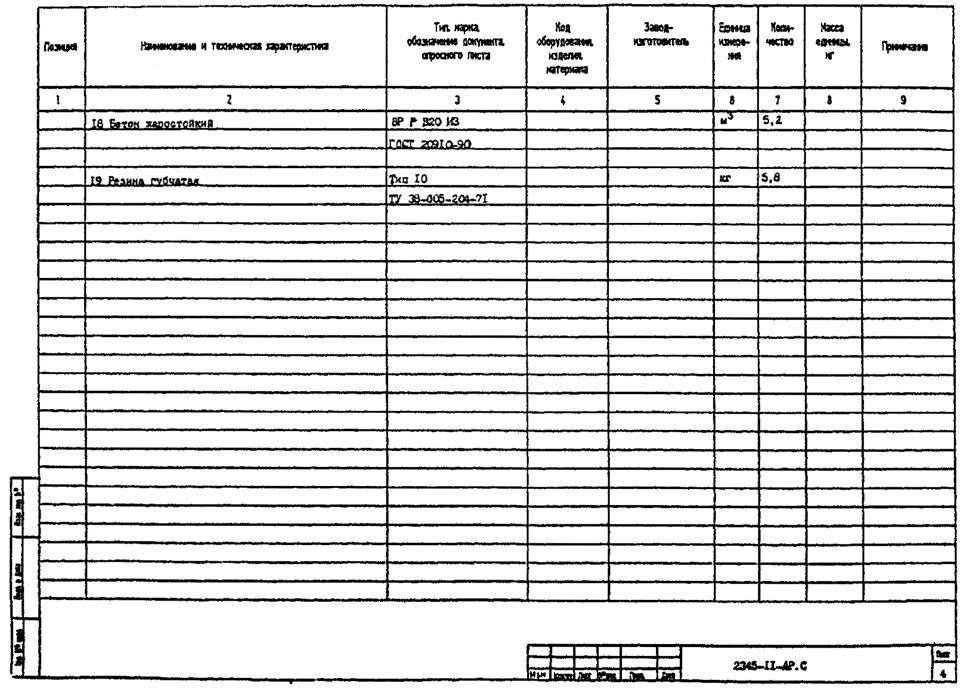 5.3.5 Пример составления (заполнения отдельных позиций) спецификации оборудования, изделий и материалов к основному комплекту рабочих чертежей марки ПЖ приведен в приложении Б.