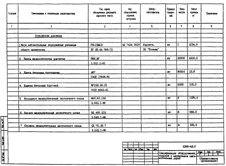5.4.2 Оборудование, элементы автомобильной дороги (изделия) и материалы в разделе «Устройства дорожные» записывают по группам в следующей последовательности: