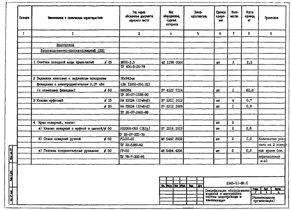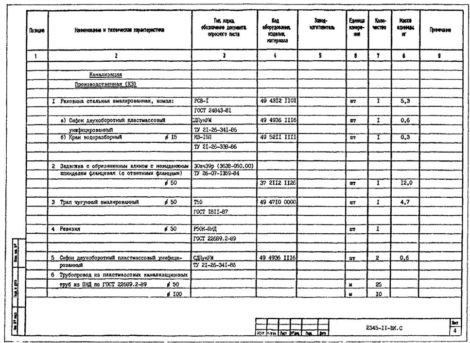 2 Спецификация оборудования, изделий и материалов систем водопровода и канализации
