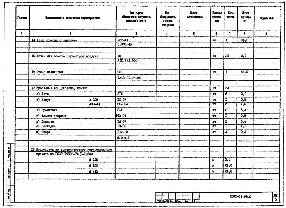 5.7.4 Пример составления (заполнения отдельных позиций) спецификации оборудования, изделий и материалов к основному комплекту рабочих чертежей марки ОВ приведен в приложении Д.