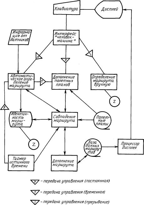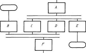 3) линейных символов, отображающих передачу данных между устройствами ввода-вывода и процессорами, а также передачу управления между процессорами;