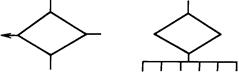 Символ отображает решение или функцию переключательного типа, имеющую один вход и ряд альтернативных выходов, один и только один из которых может быть активизирован после вычисления условий, определенных внутри этого символа. Соответствующие результаты вычисления могут быть записаны по соседству с линиями, отображающими эти пути.